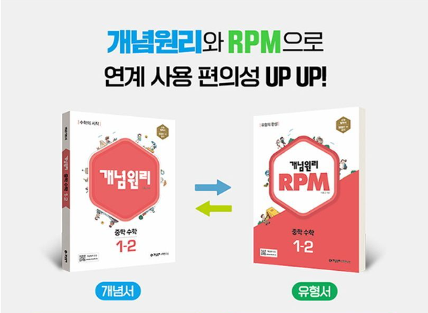 개념원리 RPM 교재는 국내에서 수학 개념을 완벽하게 정리 해놓은 유명 수학 개념서 입니다. 해당 교재는 개념원리로 개념을 먼저 익히고 RPM을 이용 하여 다양한 난이도의 문제를 해결 하여 해당 챕터 개념을 완벽히 다질 수가 있습니다.