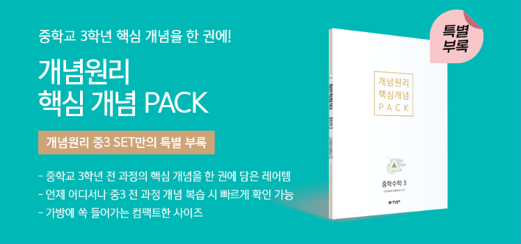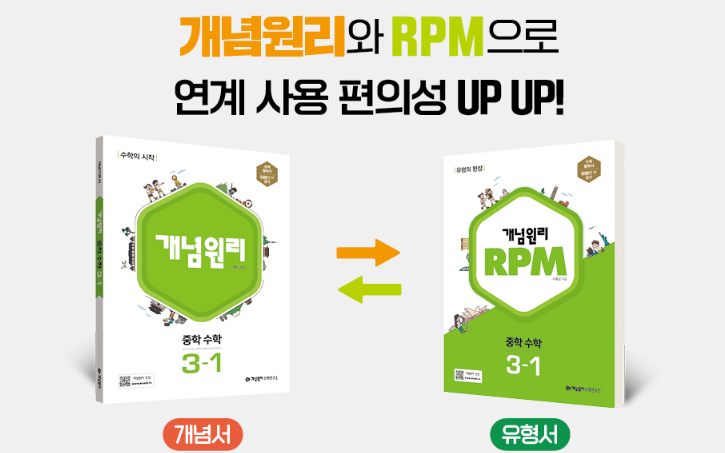 개념원리 RPM 3-1은 중학교 3학년이 사용하는 교재입니다. 위에 이미지처럼 개념을 제대로 활용할 수 있는지 체크하려면 개념원리만 한 교재가 없습니다.