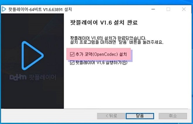 모든 설치가 완료 되었으며 추가 코덱(open codec)또 체크 해주세요. 추가 코덱까지 모두 설치 해야 동영상 재생에 지장이 없습니다.