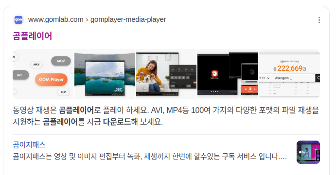 곰플레이어는 빠른 로딩 속도와 끊기지 않는 성능을 가지고 있는 유명 동영상 플레이어 프로그램입니다. 무엇이든 재생 가능한 국내 최고 무료 동영상 플레이어로 유명합니다.
