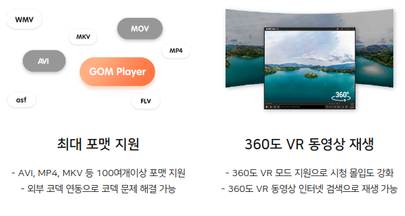 또한, 손상된 파일들도 별도의 통합코덱을 다운로드하여 끊기지 않게 재생이 가능하며, 4K 이상의 고화질 영상들도 끊김 없이 재생이 가능합니다.